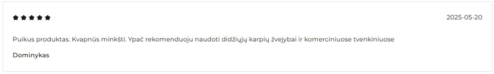 O žvejį laimingu padaro trofėjinis laimikis. Kukulis siūlo platų jaukų ir masalų, skirtų karpių žvejybai, pasirinkimą. Mūsų produktai užtikrins sėkmingą Jūsų žvejybos procesą ir padės privilioti net ir aikštingiausius karpius. Nuo šiol Kukulis.lt e-parduotuvėje galite įsigyti ir žvejybinę įrangą!